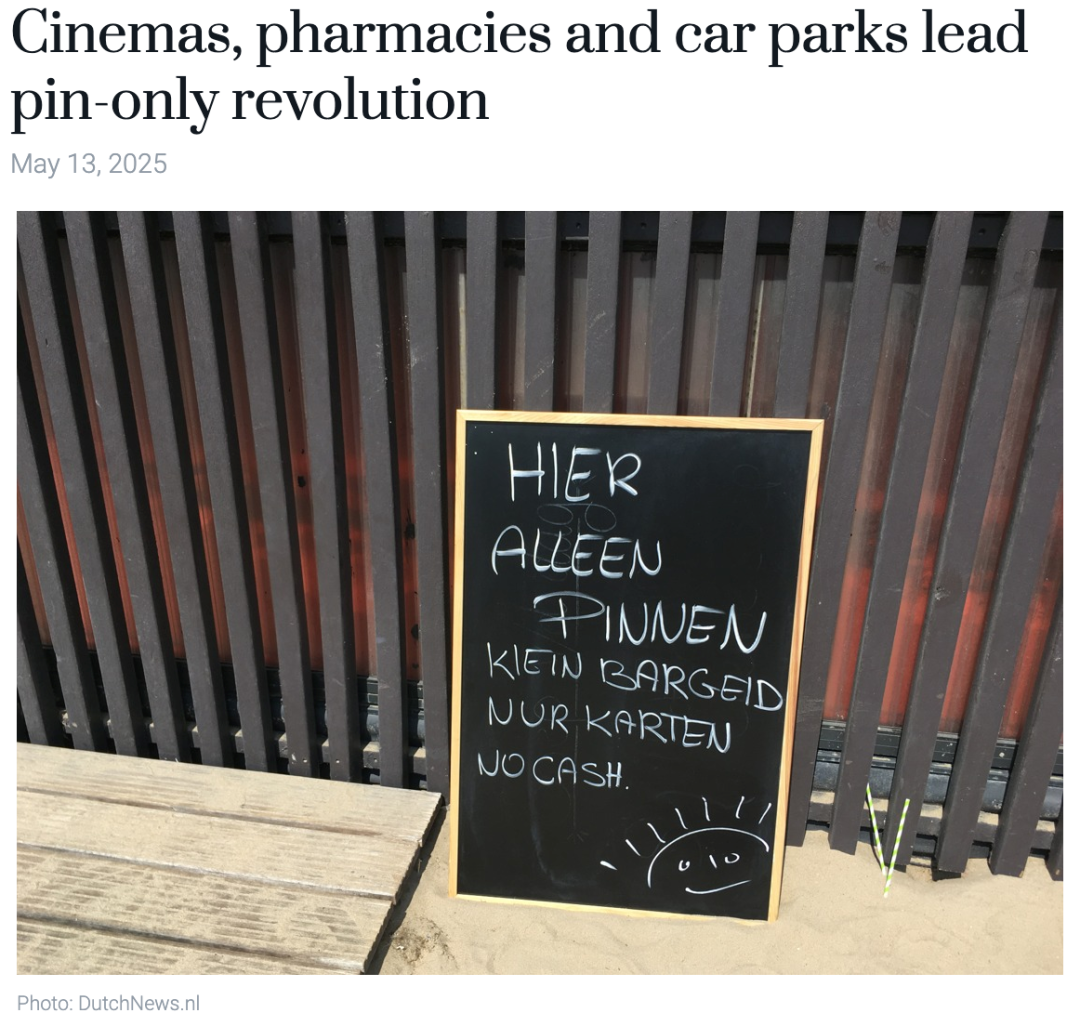 区域差异也很明显:Flevoland和Noord-Holland的无现金商户最多,而Zeeland省所有销售点仍支持现金付款。