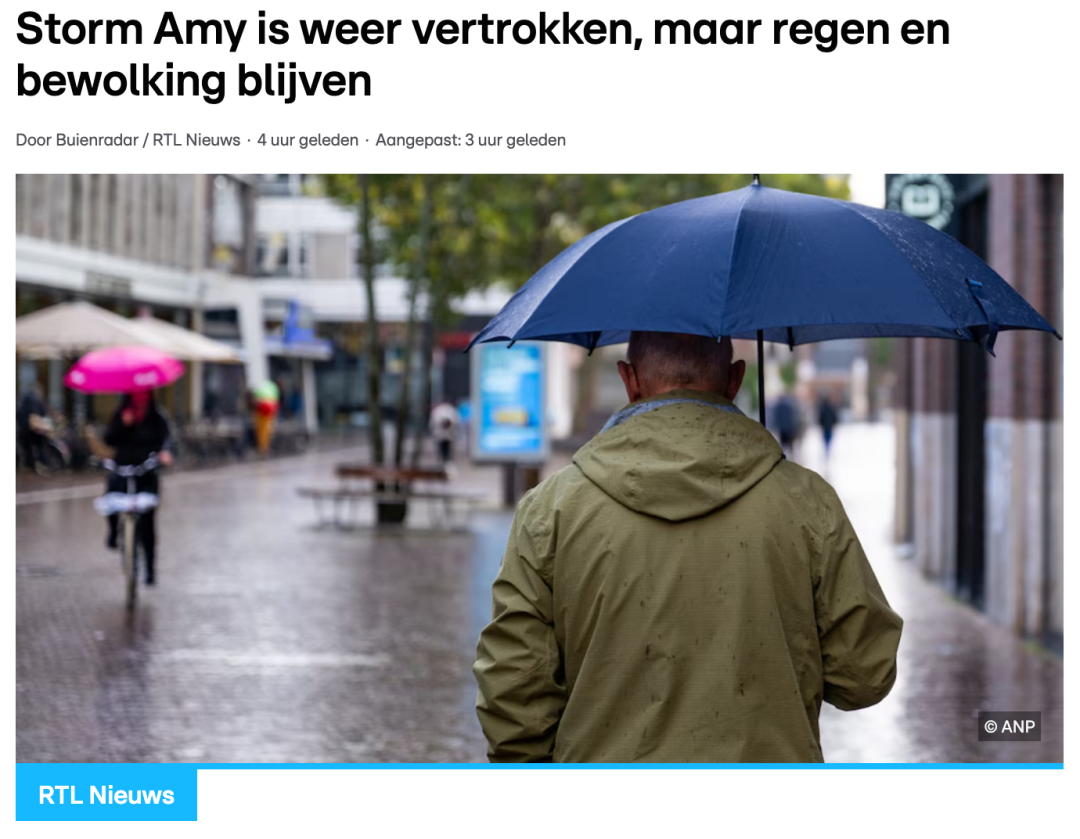 据rtl.nl报道,经历了风雨交加的周末后,荷兰新的一周在阴沉的天空下开始。今天大部分地区多云,来自西部的一道轻微降雨带正缓缓穿过荷兰。