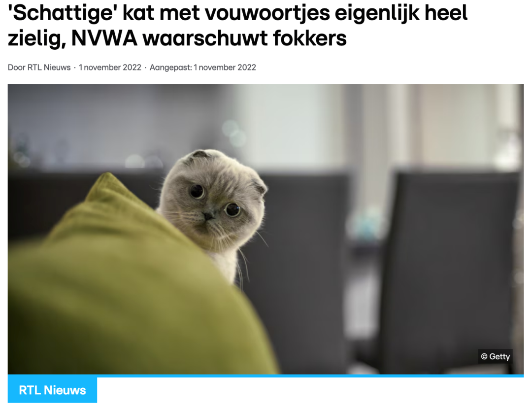 动物遗传学专家、乌得勒支大学的Hille Fieten指出,无毛猫和折耳猫的身体结构决定了它们需要特殊照顾,而这些外貌特征可能让它们受苦。她认为,人类不应为了审美继续繁育这种有健康风险的猫。