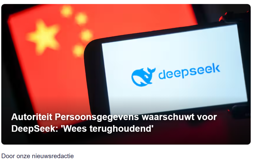 荷兰数据保护局(AP)本周五警告称,使用中国新的AI应用程序DeepSeek的用户应该“非常小心和谨慎”。他们正在对向中国进行个人数据传输展开广泛调查,部分原因是出于对这款AI的担忧。