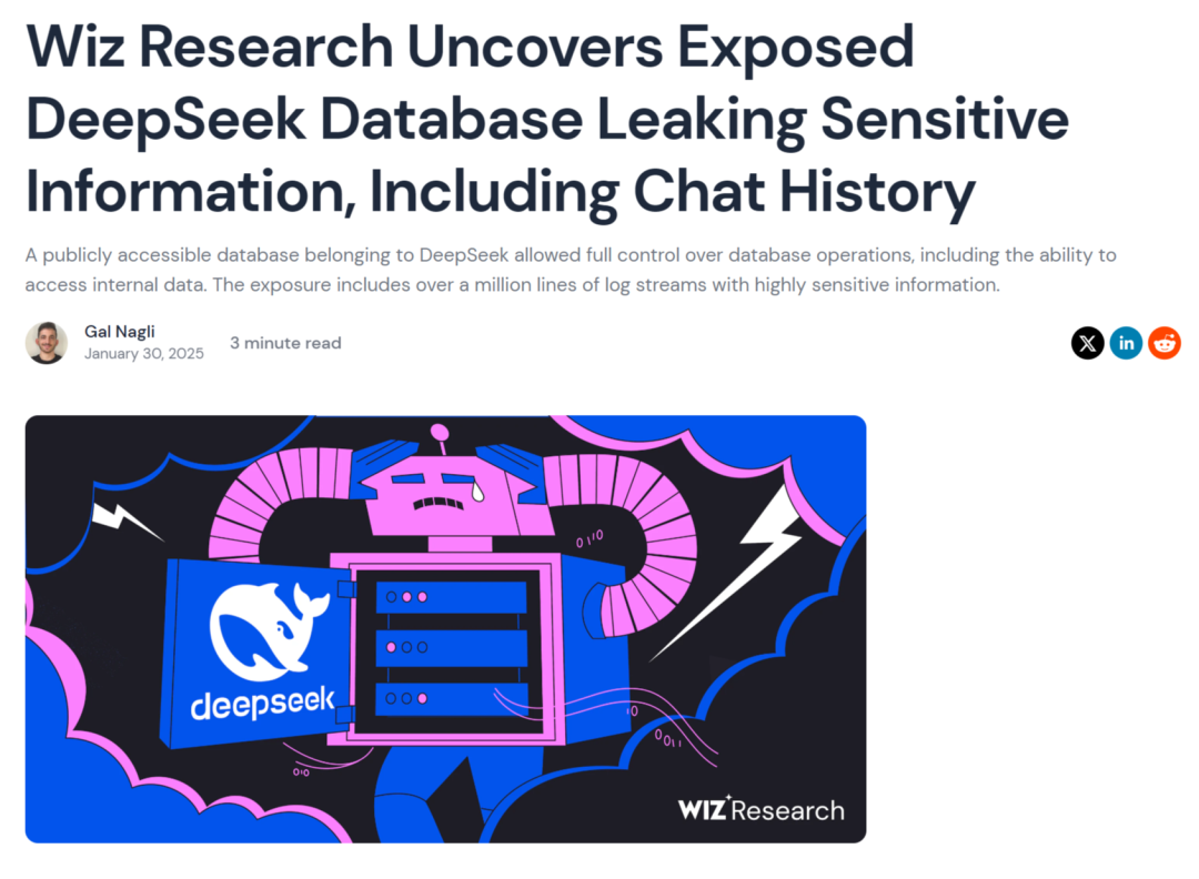 荷兰数据保护局并不是唯一感到恐慌的监督机构。周五,网络安全公司Wiz报告称DeepSeek发生重大数据泄露,本周有超过一百万条用户聊天记录可供公开访问,这也涉及敏感信息。意大利数据保护局则在近日宣布,立即在意大利封锁DeepSeek,在应用市场下架相关程序。