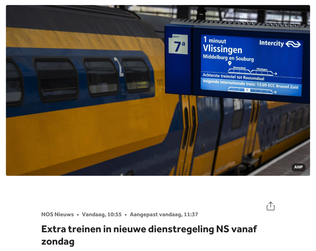这意味着 Zeeland 与北布拉邦省(Noord-Brabant)之间的连接频率更高,跨省通勤将更顺畅。