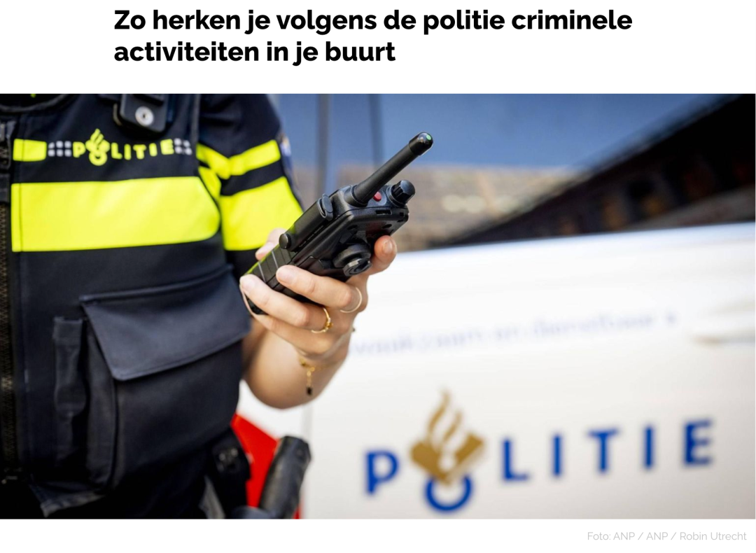 如何识别犯罪活动的信号呢?正如司法与安全部长David van Weel所说:“基本规则是,如果你发现有什么不对劲,保持警觉并报告它。这可能是社区安全受到威胁的迹象。”