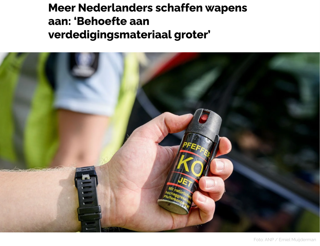 在荷兰,虽然法律明令禁止拥有武器,但越来越多的荷兰人开始在德国购买自卫工具,如泰瑟枪、辣椒喷雾或橡胶子弹枪,因为在德国这些产品是合法的。这种趋势的背后,是人们对安全的担忧不断增加。