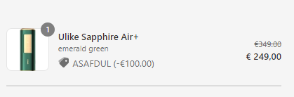 Ulike蓝宝石Air折扣码:ASAFDUL(71折)