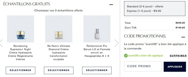 👉 购物车界面还可叠加自选试用装!满60€送自选2件,满120€送自选3件!