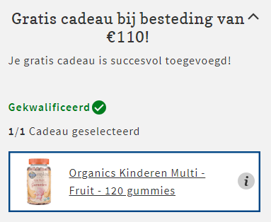 购物车实付满110€,送1件礼品!