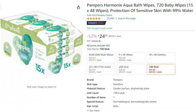 【亚马逊闪促】🔥 帮宝适婴儿湿巾闪促!湿巾1欧多一包!专为婴儿娇嫩肌肤设计!赶快囤起来!
