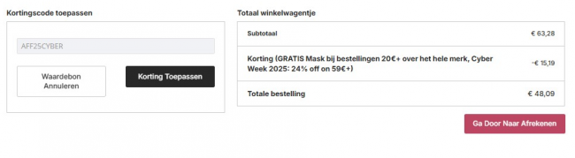 无门槛折上8折!满59€折上76折!折扣码:AFF25CYBER