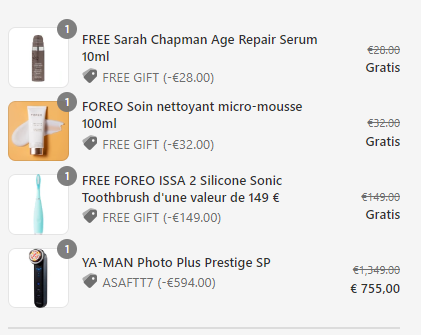 👉🏻 赠Foreo ISSA 2 电动牙刷(价值149€)+Foreo慕斯洁面(价值32€)+Sarah Chapman修复精华10ml(价值28€)!赠品总价值209€啊!!!